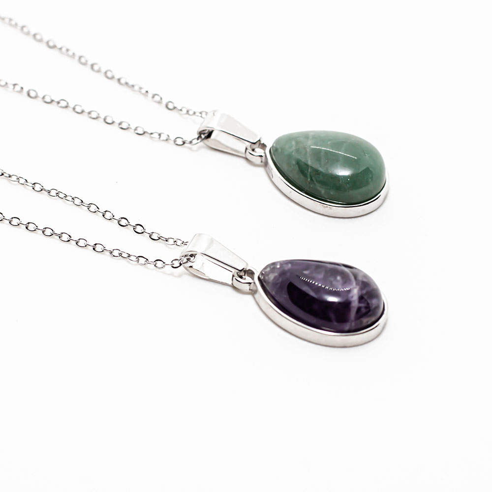 Dije de piedras naturales y cadena de acero quirúrgico color plateado de alta gama (largo de la cadena 50 centímetros).